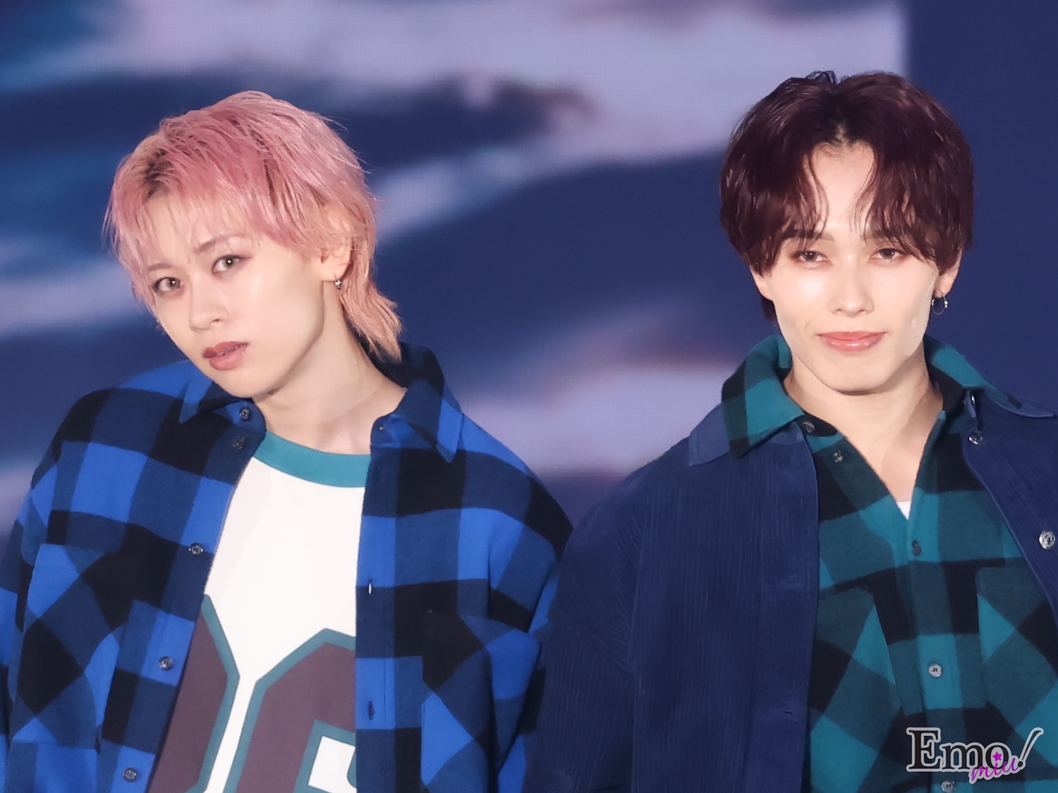 お揃いのチェックのシャツを着たおソロコーデを披露!