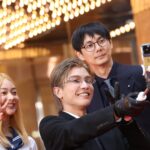 岩田がスマホを持って、3人一緒に記念写真を撮るなど、和気藹々とした雰囲気でレッドカーペットを楽しんでいた。