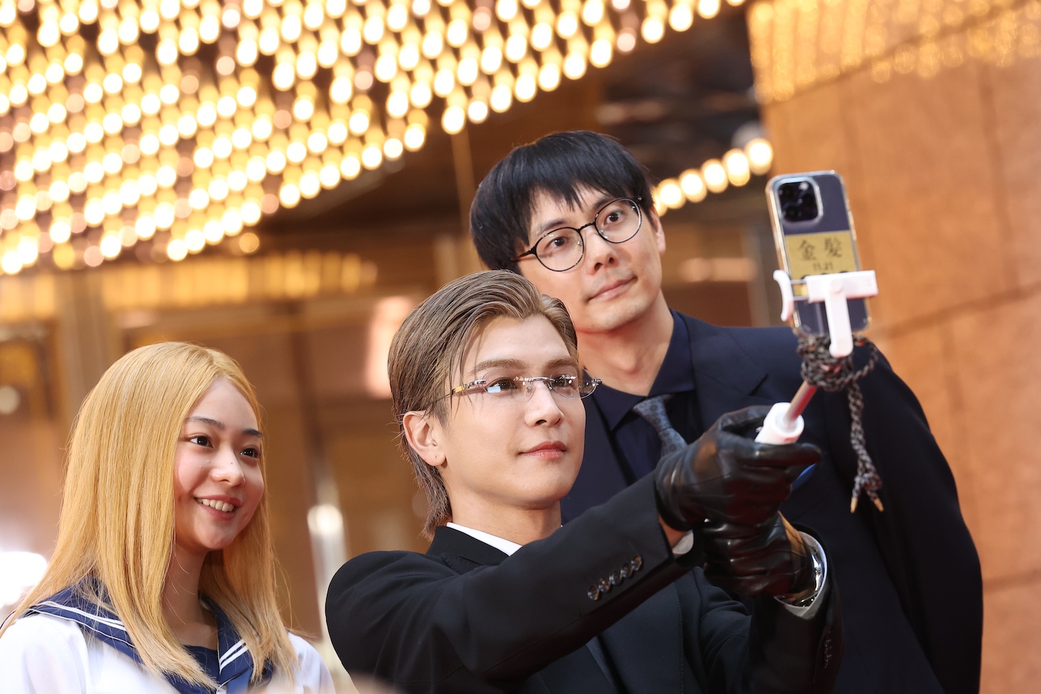 岩田がスマホを持って、3人一緒に記念写真を撮るなど、和気藹々とした雰囲気でレッドカーペットを楽しんでいた。