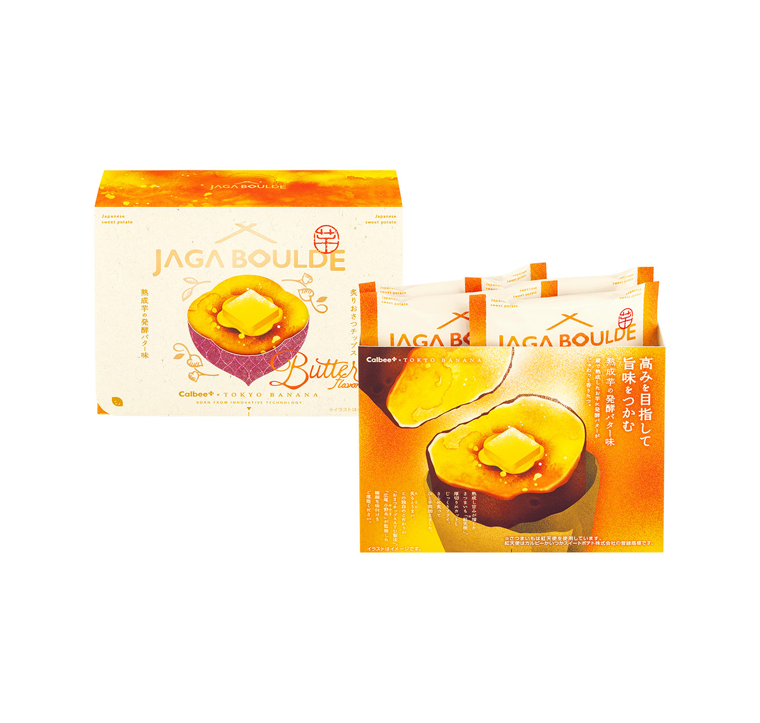 【Calbee+×東京ばな奈 炙りおさつチップス 熟成芋の発酵バター味】