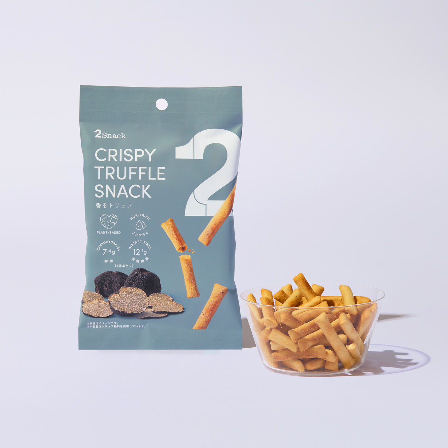 「2Snack」は、「Better Bites! “そのひとくちから始まる、ちょっといい習慣”」をコンセプトに展開するスナック。ギルトフリーなスナックは物足りなかったり味気ないというイメージを払しょくするような、手の止まらないやみつき感を実現。本商品はヨーロッパ産黑トリュフ入りのトリュフ原料を使用した、トリュフの香りがやみつきになる味わいを楽しんでみて。