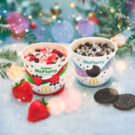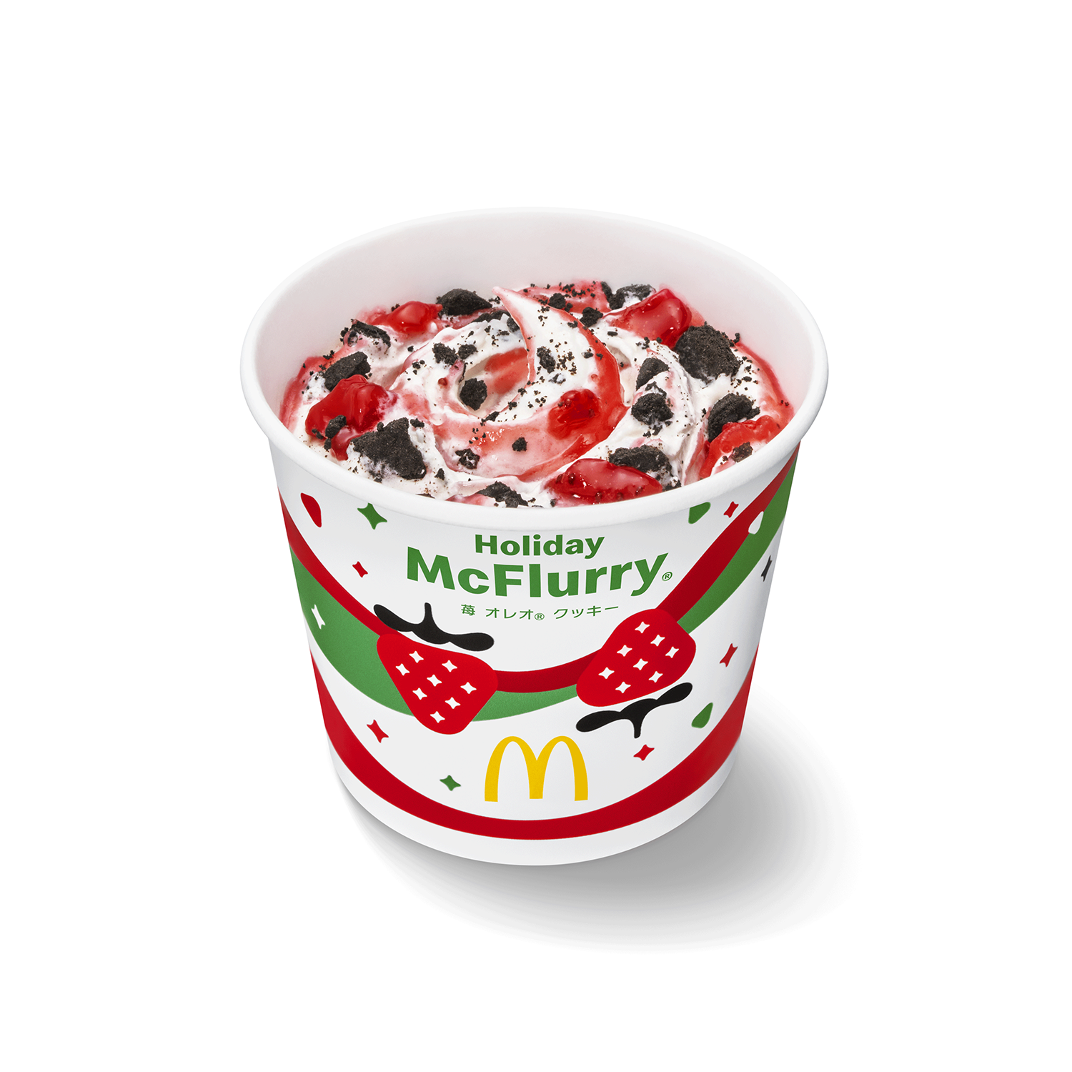 濃厚なめらかなソフトクリームに、ザクザク食感のオレオ® クッキーと果肉感たっぷりのストロベリーソースを混ぜ込んである。ほろ苦いオレオ® クッキーとフルーティーで甘酸っぱいストロベリーソースの絶妙なハーモニーが楽しめる、ホリデーシーズンにピッタリな華やかなスイーツ。