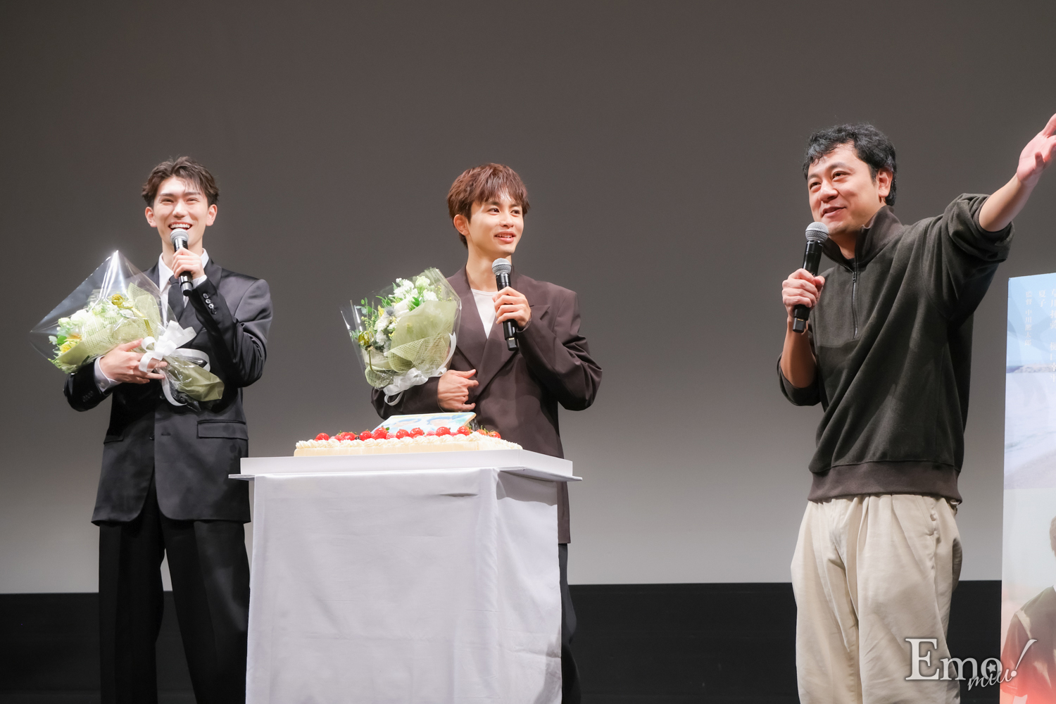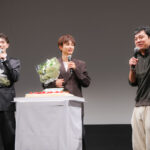 語っても語り足りないトークセッションも終わり、フォトセッションを実施。再度準備を終えた3人が登壇したところで、11月24日に誕生日を迎える草川と11月30日に同じく誕生日を迎える樋口へバースデーサプライズを実施。サプライズでケーキが登場し、監督の掛け声で会場にかけつけたファンから「お誕生日おめでとう!」と、そして監督からは「生まれてきてくれてありがとう!」とお祝いのメッセージが送られた。