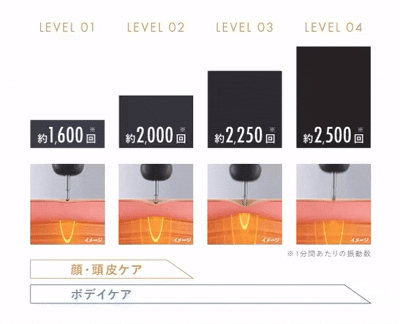 しかも4段階の振動レベルを搭載し、肌の状態やお好みに合わせたケアが可能。