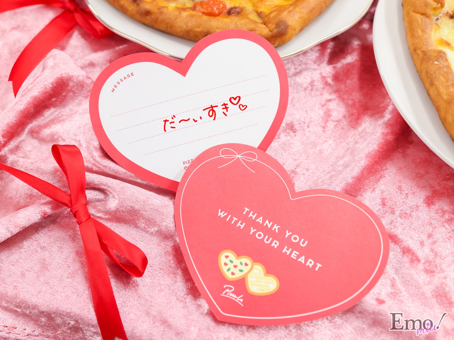また、今ならハートピザを注文すると、特製のオリジナルメッセージカード(数量限定)がもらえるよ!*無くなり次第終了。
