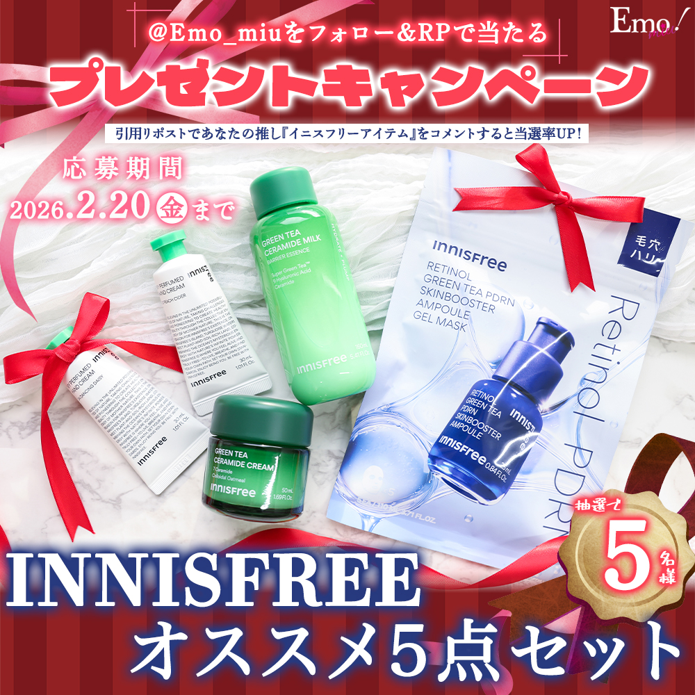 <Present>イニスフリーの高評価な『グリーンティー セラミド』シリーズに話題のレチノール+PDRNのマスクで保湿力を高める!