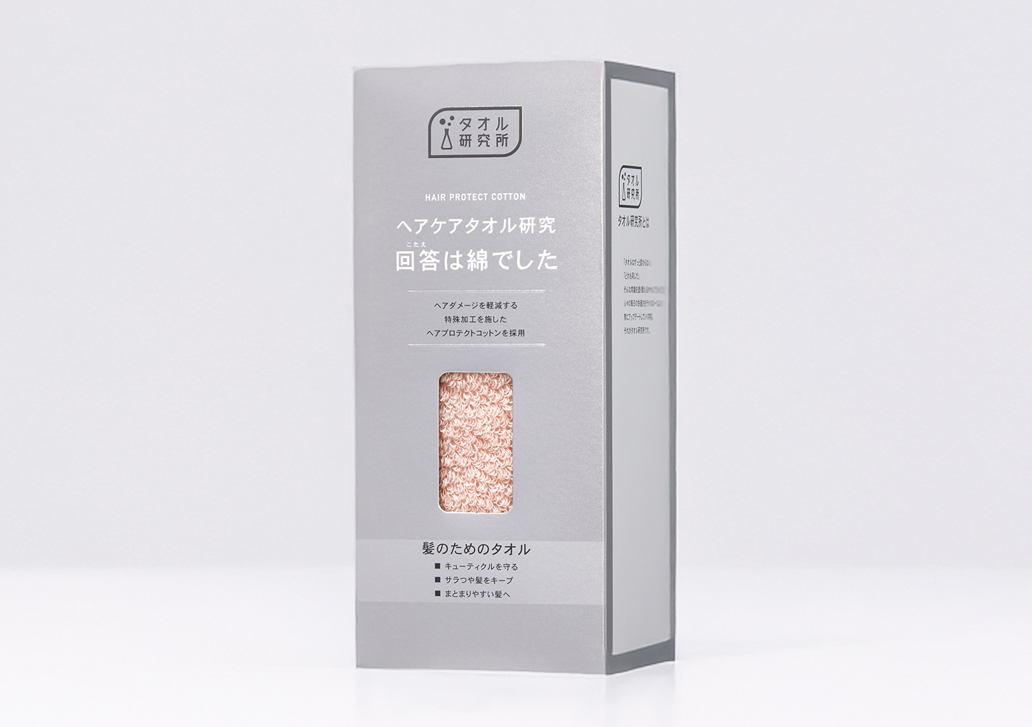 タオル研究所として初の美容領域に向けた研究開発商品。日常のヘアケアにおいて見過ごされがちな「タオルドライ時の摩擦」に着目し、ヘアダメージを軽減する髪にやさしい使用感を実現。繊維形状が太く角がないため、キューティクルの隙間に刺さりにくく、髪を引っかけにくいのが特⻑。春からの新生活、何気ないタオル選びから変えてみては?