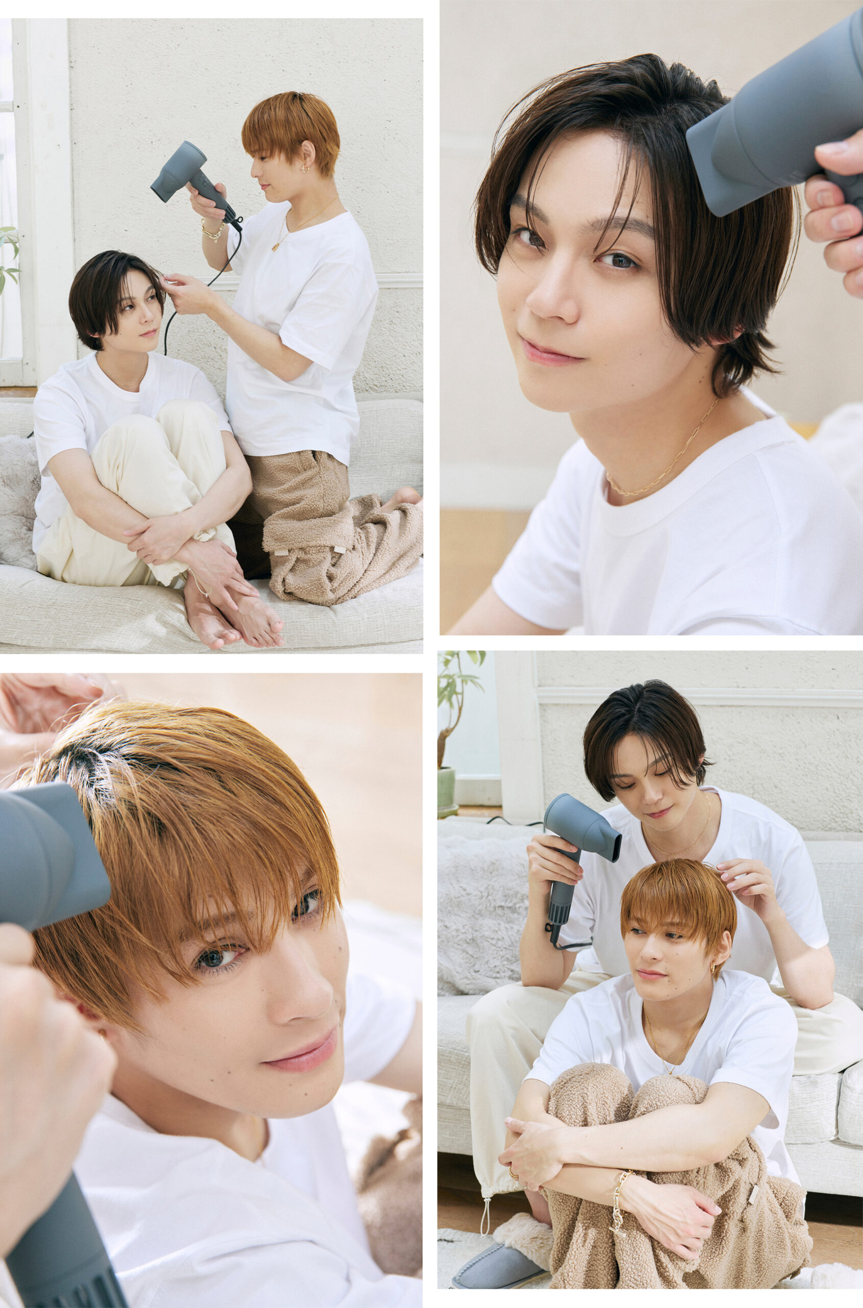 冗談を言い合いながら、わちゃわちゃドライヤータイム。ドライヤー中も“ホワイトフローラル&ペアーの香り”に包まれて、いい気分♪