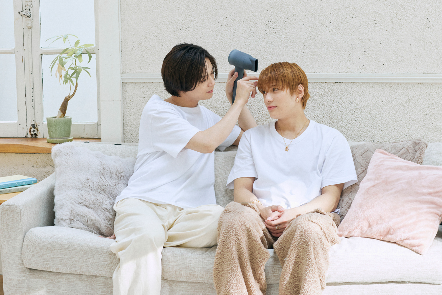 【ワンエン・TETTA×REI】もしも”てたれい”がルームシェアをしていたら?ふたりのシルク髪のヒミツはワンエンカラー”ホワイト”に煌めく『plus eau(プリュスオー)』シャンプー♪