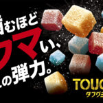 『タフグミ mini』は、『タフグミ』の“噛み続けたくなる、やみつきのウマさ”はそのままに、女性など口が小さい・顎の力が弱い方でも食べやすいように、小粒サイズにしたグミ。「食べやすいサイズで歯ごたえも感じられて良い」、「一口で食べることが苦手でも『タフグミ』らしさを楽しめる」といった好評を受け、一部コンビニエンスストアで先行発売していた『タフグミ mini ソーダ&マスカットデュオ』を、今回展開エリアおよび業態を拡大し、3月31日(火)より全国のスーパーマーケット、ドラッグストア等でも販売。
