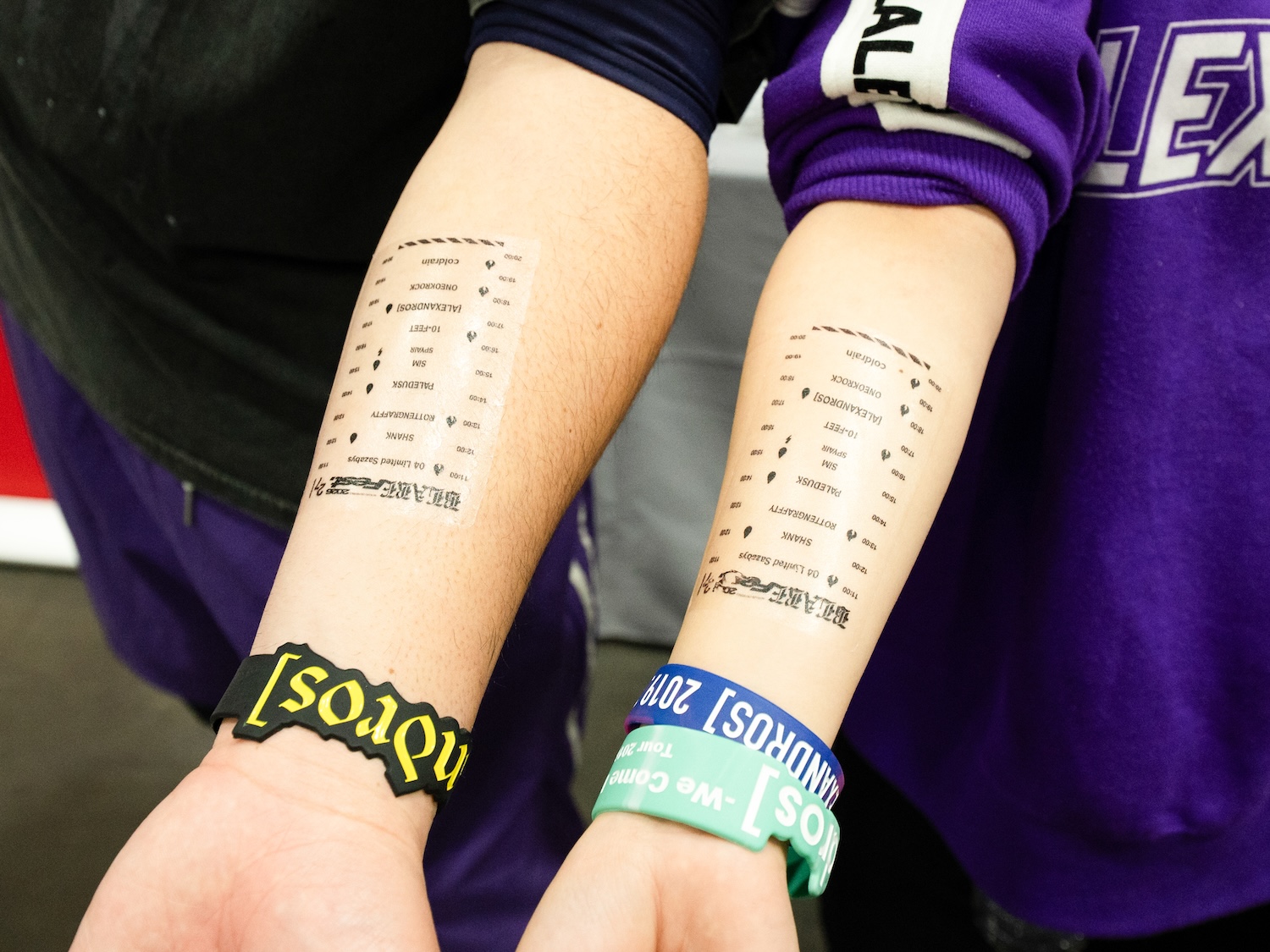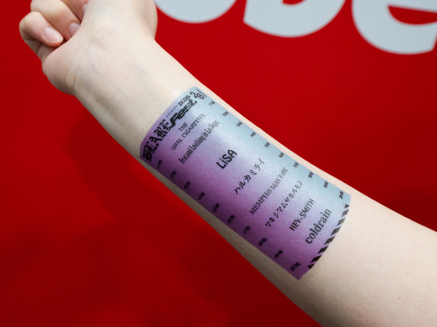 もうひとつの人気企画は、【Adobe Express】のテンプレートをベースに自分らしく編集するだけで完成度の高いマイタイムテーブルがあっという間に制作できる体験。【Adobe Express】はデザイン経験ゼロでも安心して使えるのが魅力で、プロが手がけたデザインやテンプレートが豊富で、出演アーティスト名を自由に配置し、配色や装飾をカスタマイズして完成させたデザインは、タトゥーシールとして出力。
