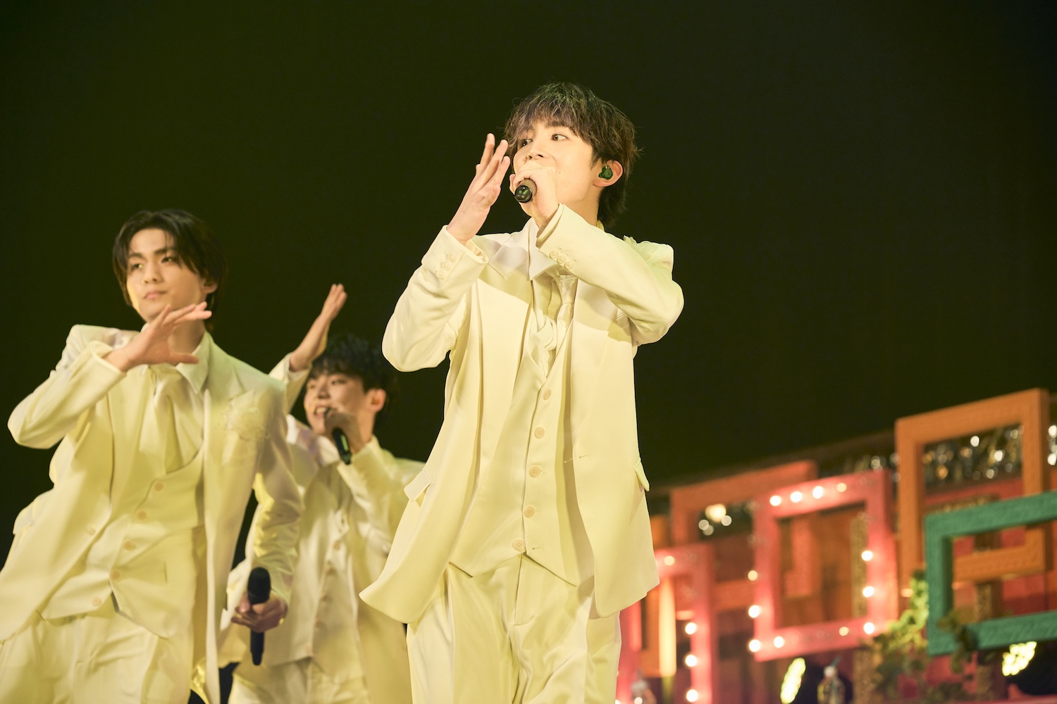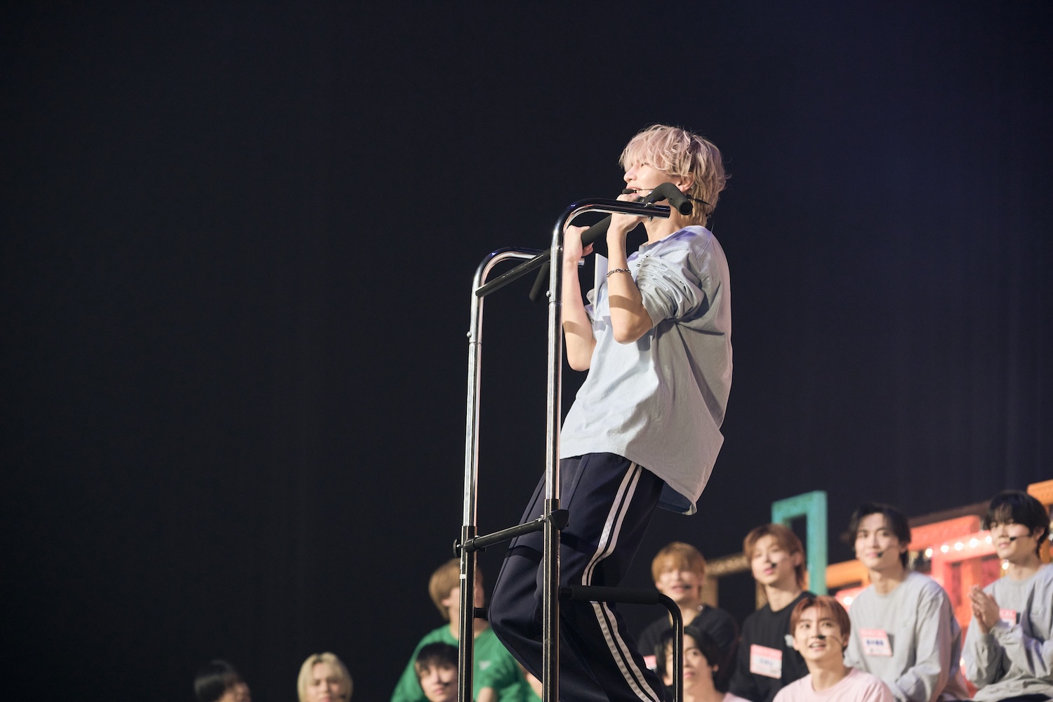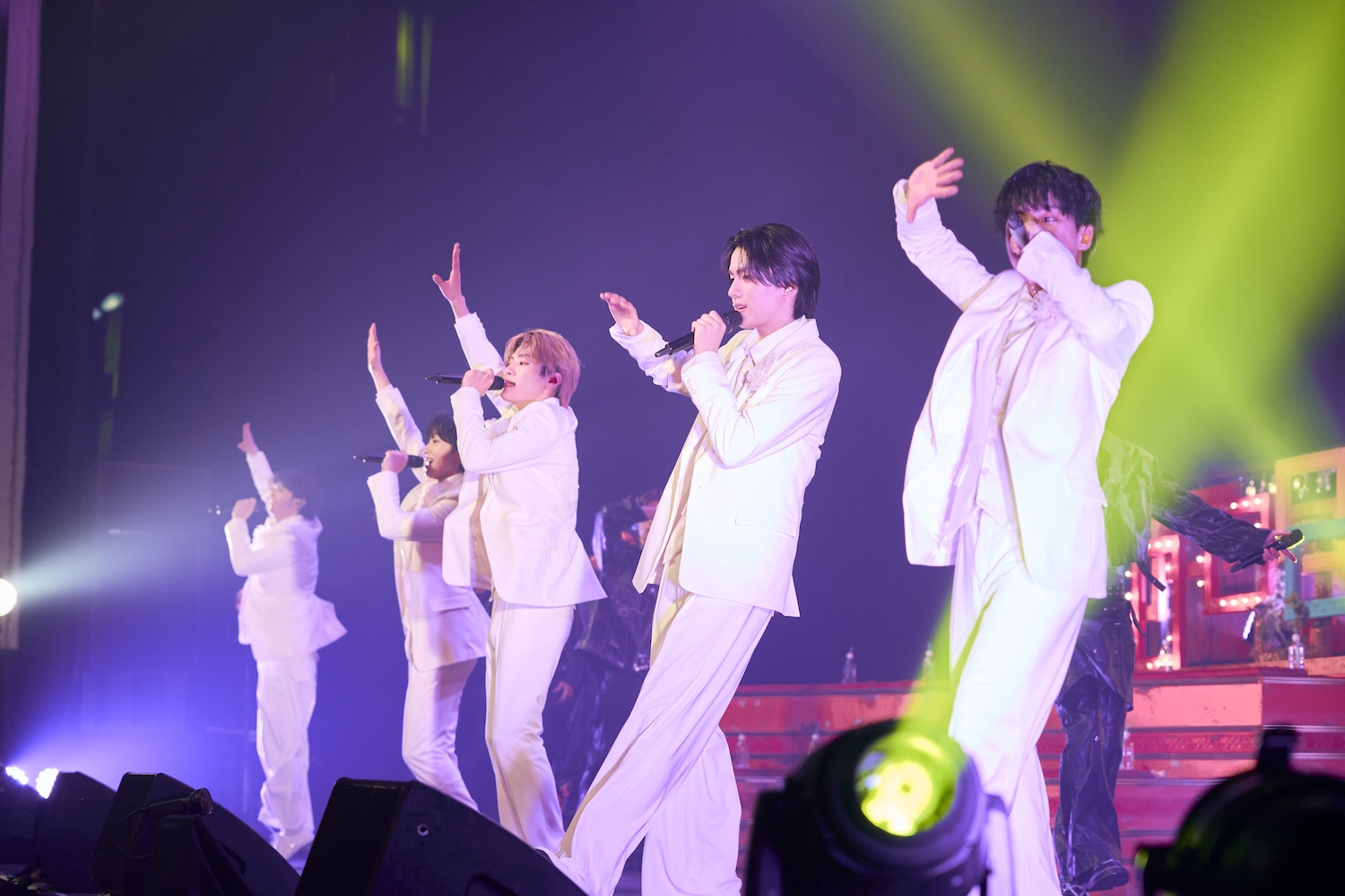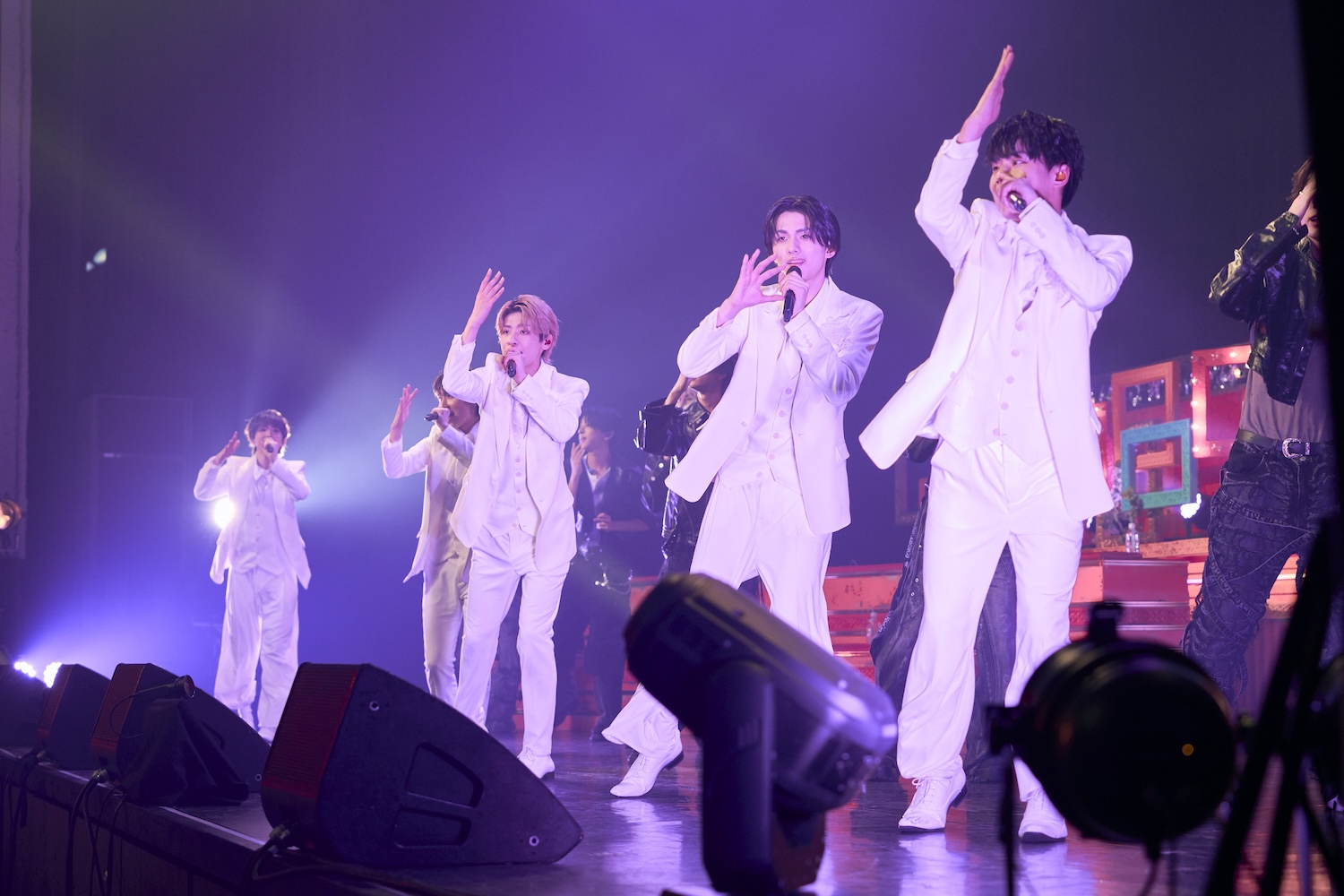 また多くのメンバーが一堂に会する貴重な機会。楽屋での様子を聞かれると阿久根は「(ICExとLienel)お互いうるさいよね。ずっと歌ってます」。FUMINORIは挨拶に行ったそうでそのときの様子を語った。「ICExの楽屋が真っ暗だったんですよ。『なんでこんな暗いの?』って聞いたら、『いや、ICExチルいんで』って言われて。さすがに楽屋出ました」とのことで、先輩メンバーからは「そういう歳だから……」とのコメントが。