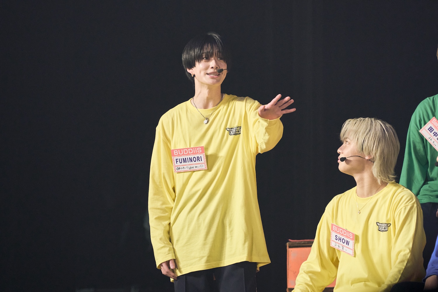 『DAN!DAN!EBiDAN!』ではうまくいったことがないと切り出したのはFUMINORI。「年齢非公開の同い年のリョウガと、しっかり最年長で盛り上げていけたらなと思ってます。LienelとICExは後輩と言えど、1年くらいしか変わらないので、そこはBUDDiiSも同じ気持ちで後輩としても僕も盛り上げられたらな、となんか何かあったら俺がいるぞと思ってくれれば」と言うが、周りからの反応がなく、「なんか取材もうまくいかなくて!」と嘆き、メンバーも爆笑。そして後輩に対して「なんかあったら大丈夫だよ、僕がいるよ、同じ気持ちだよ、って。だからなんかあっても僕がいると思ってもらえれば」と改めて言うと田中から「いると思うだけ?なんかしてくれるわけじゃなくて?」とツッコミを受け「それは本番次第でしょ。まじで今日うまくいかせるんで見ててください!」と決意の様子を見せた。