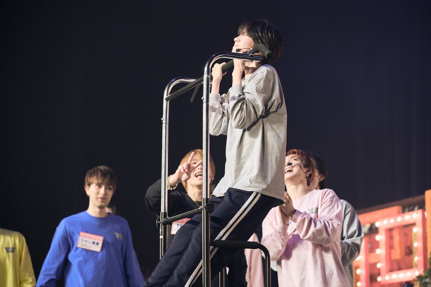 TETTAも「やっぱり後輩には、負けられないですよね」とやる気。今回は持ち込み企画として懸垂があり、「やっぱり持ち込んだからには負けられない」と言い、「ひとり5回のルールなんですけど、僕ら先輩はもっとできるんじゃないかというところを見せられたらいいなと思っています。負けたらグループに帰れないので最大のプレッシャーを感じながら来ています」。