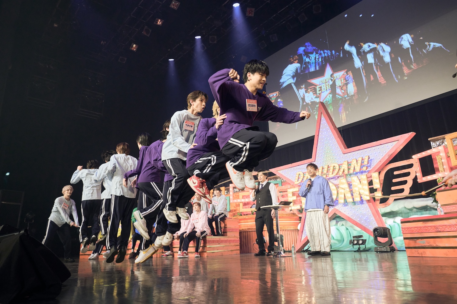まず意気込みを聞かれてリョウガは「『DAN!DAN!プレッシャー!』という以前もやったことがある内容でして、だいぶ体を張る部分もあるので、個人的には年齢は秘密ですけれども、大台に達している自分に果たして出番があるのかというところなんですが、とにかくケガなく楽しく過ごしたいなと思っております!」。続いてジャンは「普段はEBiDAN全員に見られながらのプレッシャーだと思うんですが、観客の方がいる中でのプレッシャーの中やることになると思います。いかに場慣れしているかが重要になってくるかな、と思うので、そこは先輩が大きな背中を後輩に見せられたらいいな、と思っております」。