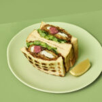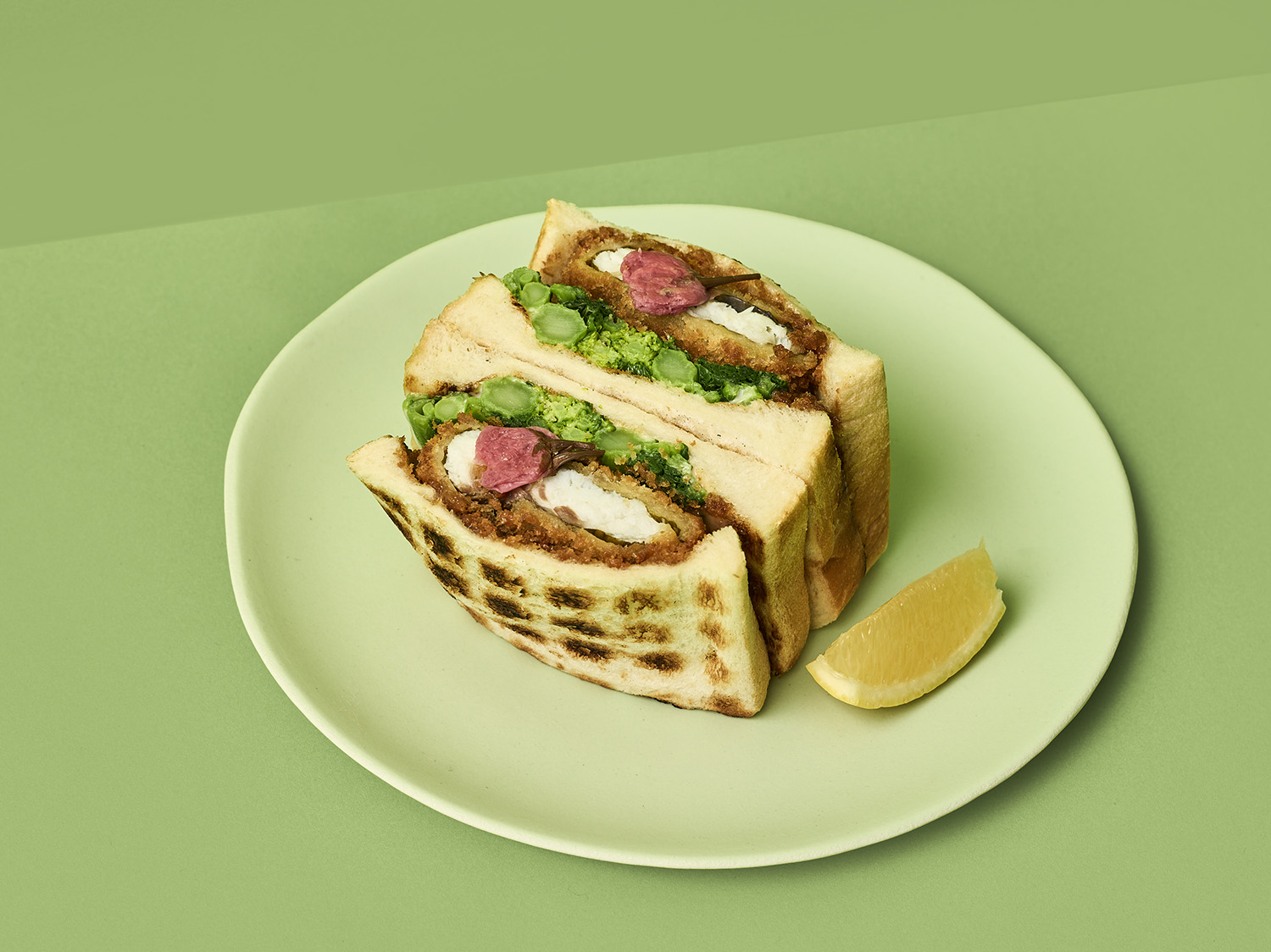 旬の桜鯛を桜の葉の塩漬けで巻いてフライにし、ほろ苦い菜花と一緒にサンドした一品。桜色に染まった今が旬の「桜鯛」を、香り高い桜の葉の塩漬けで包み、サクッと軽やかなフライに仕上げ、自慢の香ばしいトーストに、春の訪れを告げるほろ苦い菜花を合わせることで、鯛の旨みがより一層際立つ、この時期だけの贅沢なサンドイッチ。暖かな陽だまりの中、五感で春を感じる特別なランチタイムを過ごしてみて。