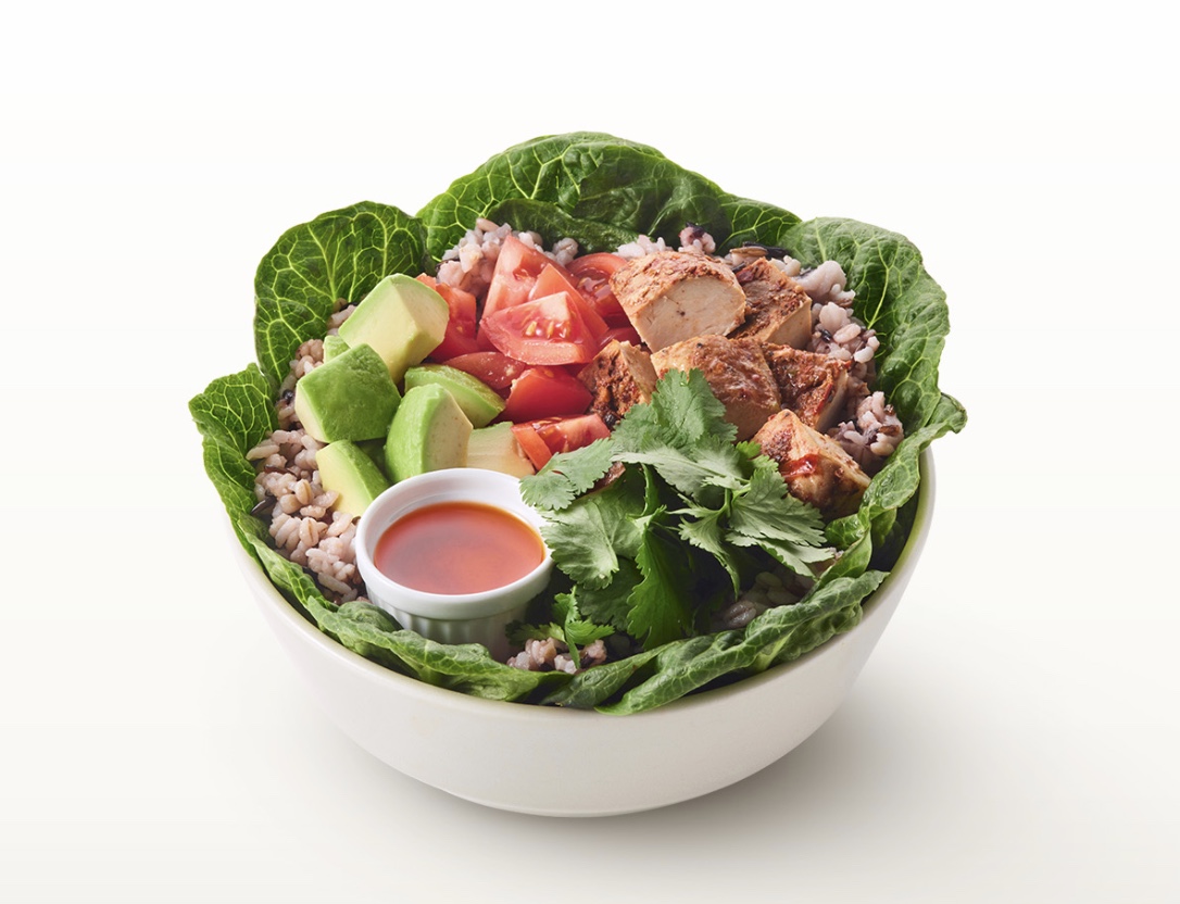 レタス、チキン、トマト、シラントロ、アボカドを合わせたチキンタコスのような味わい。ベースとなるシャキシャキのレタスに、ジューシーなチキン、フレッシュなトマト、香りのアクセントとなるシラントロ(パクチー)、そして濃厚でクリーミーなアボカドを贅沢にトッピング。ヘルシーながらもしっかりとした食べ応えがある一品。彩り豊かなパワーボウルでピクニックやランチタイムを楽しんでみて。