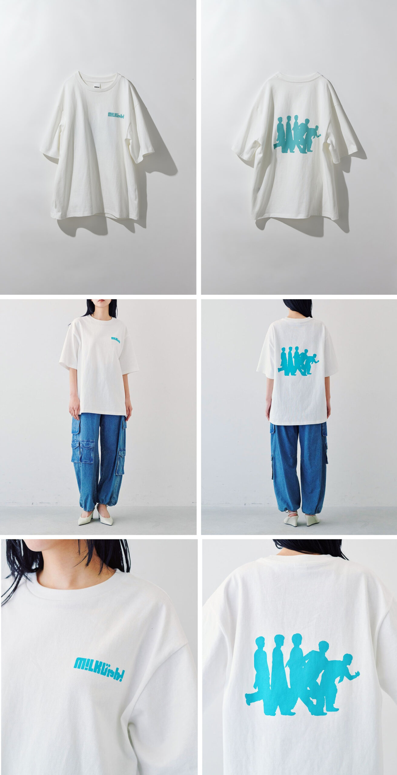 ほどよい厚みのある着心地の良いカットソー素材を使用。ボディのカラーはM!LKをイメージさせるホワイトのミルクカラーで、ほどよいゆったりシルエットで、スカートにもパンツにも合わせやすい丈感。