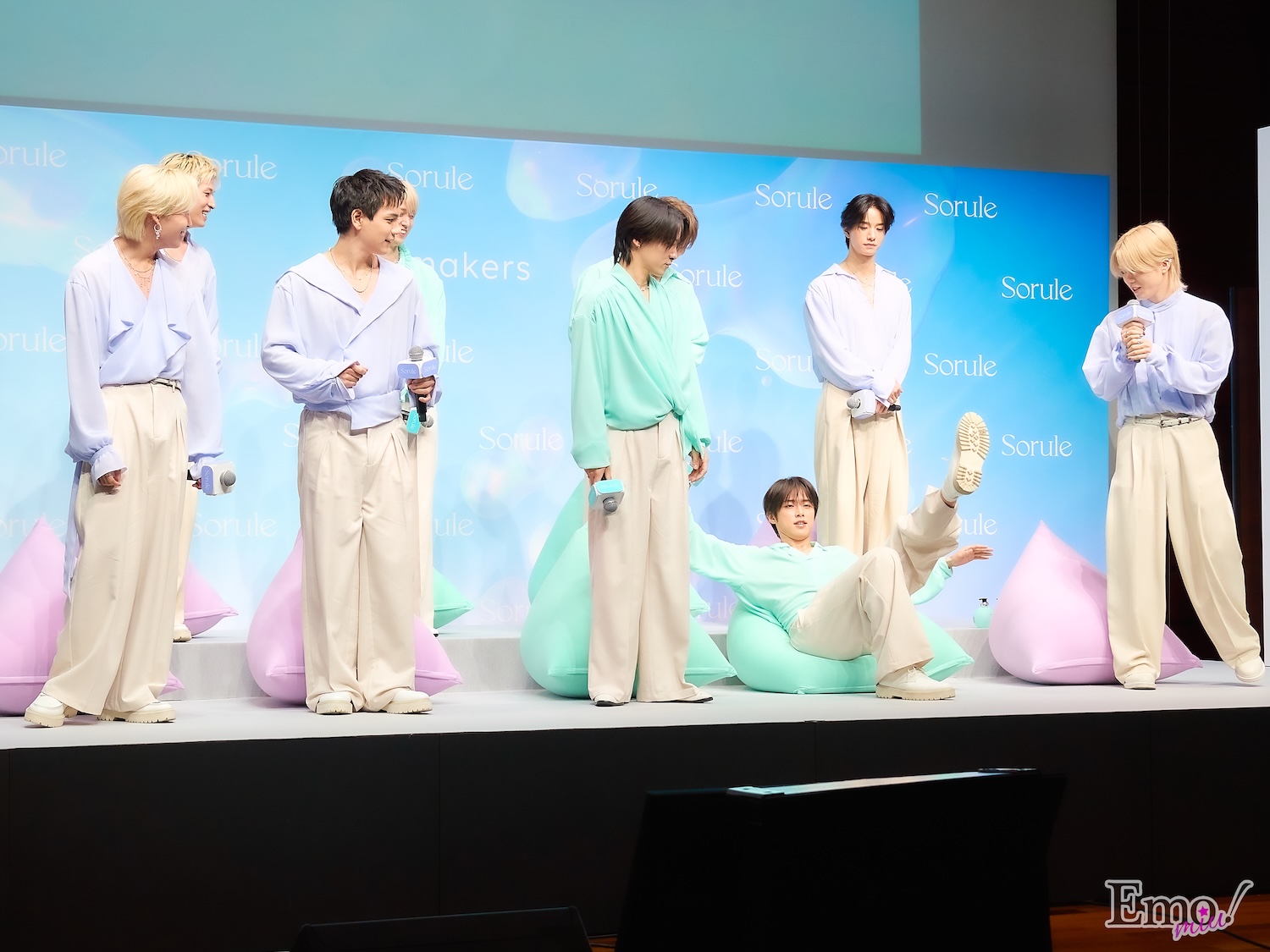 『メンバーイチ髪がやわらかい』メンバーは白岩イベント中盤ではSoruleのブランドコンセプトである「やわらかい髪」にちなんで、メンバーそれぞれの“やわらか自慢”をテーマにしたフリップトークを実施。リーダーの與那城は「毎朝、“やわらか”なエスプレッソを自分で淹れることができる?」と特技を挙げ、「エスプレッソについては2時間くらい話せるんですけど(笑) 毎朝自分で淹れるのですが、やわらかく、トロトロで。僕の中での『やわらかさ』といえばエスプレッソです」とコメント。