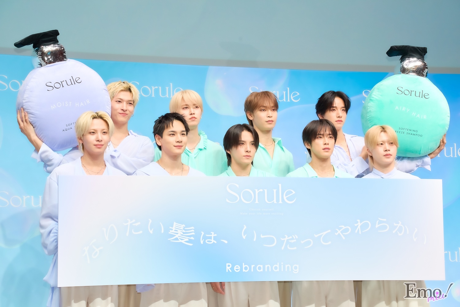 イベントにはブランドアンバサダーを務めるグローバルボーイズグループ・JO1のメンバー大平祥生、川尻蓮、川西拓実、木全翔也、金城碧海、河野純喜、佐藤景瑚、白岩瑠姫、豆原一成、與那城奨が登壇し、新CMのお披露目やリブランディングしたSoruleの魅力について語った。