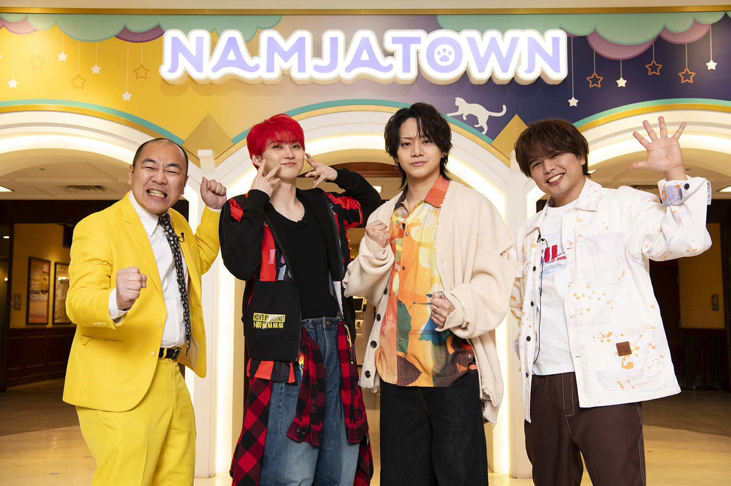 第1週目の出演者は、今勢いに乗る9人組グループ・超特急のユーキ、俳優として舞台やドラマ・映画で活躍する佐藤流司、声優・アーティストとして人気を集める仲村宗悟、そしてお笑いコンビ・きしたかのの高野正成の4人。個性豊かなメンバーが、ナンジャタウンを舞台に全力でゲームに挑む。今回のロケでは、オープン前のナンジャタウンを特別に使用し、園内を舞台にした陣取りゲームを実施。ユーキ&佐藤、仲村&高野のペアに分かれ、弓を使ったアクティビティや、園内に隠れた猫を探すミッション、個室型立体音響お化け屋敷で絶叫回数を競うチャレンジなど、ナンジャタウンのコンテンツを使った番組オリジナルの多彩なゲームが続々登場。