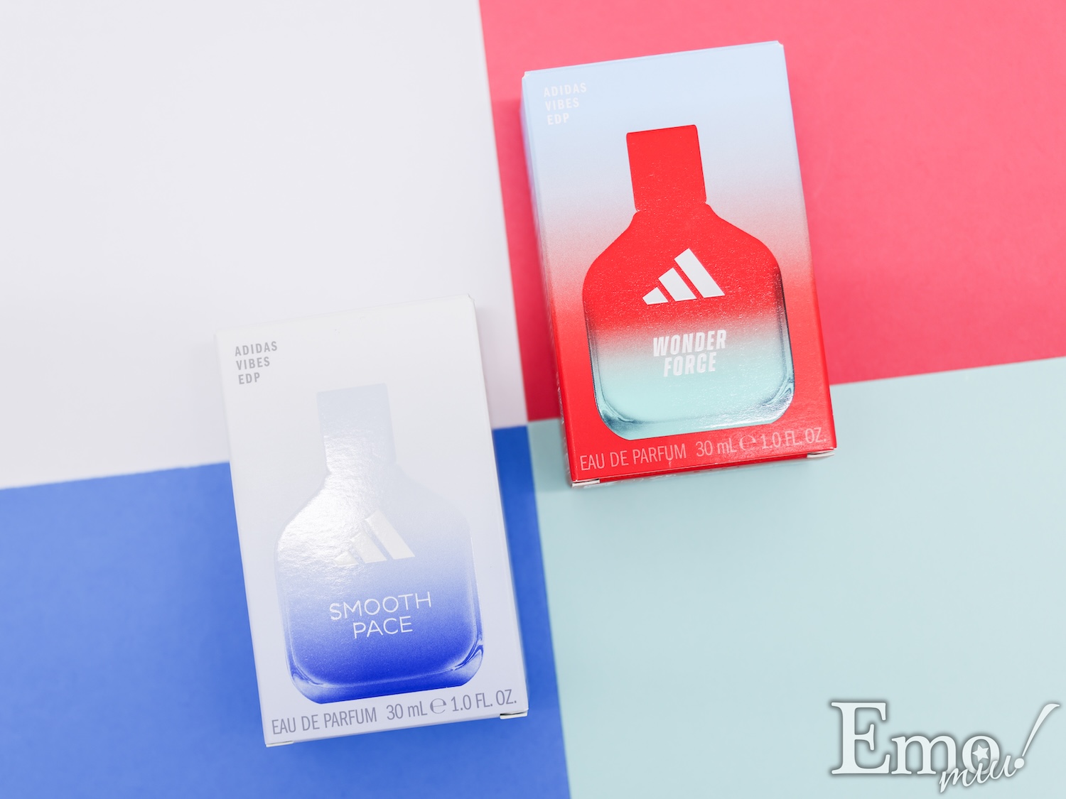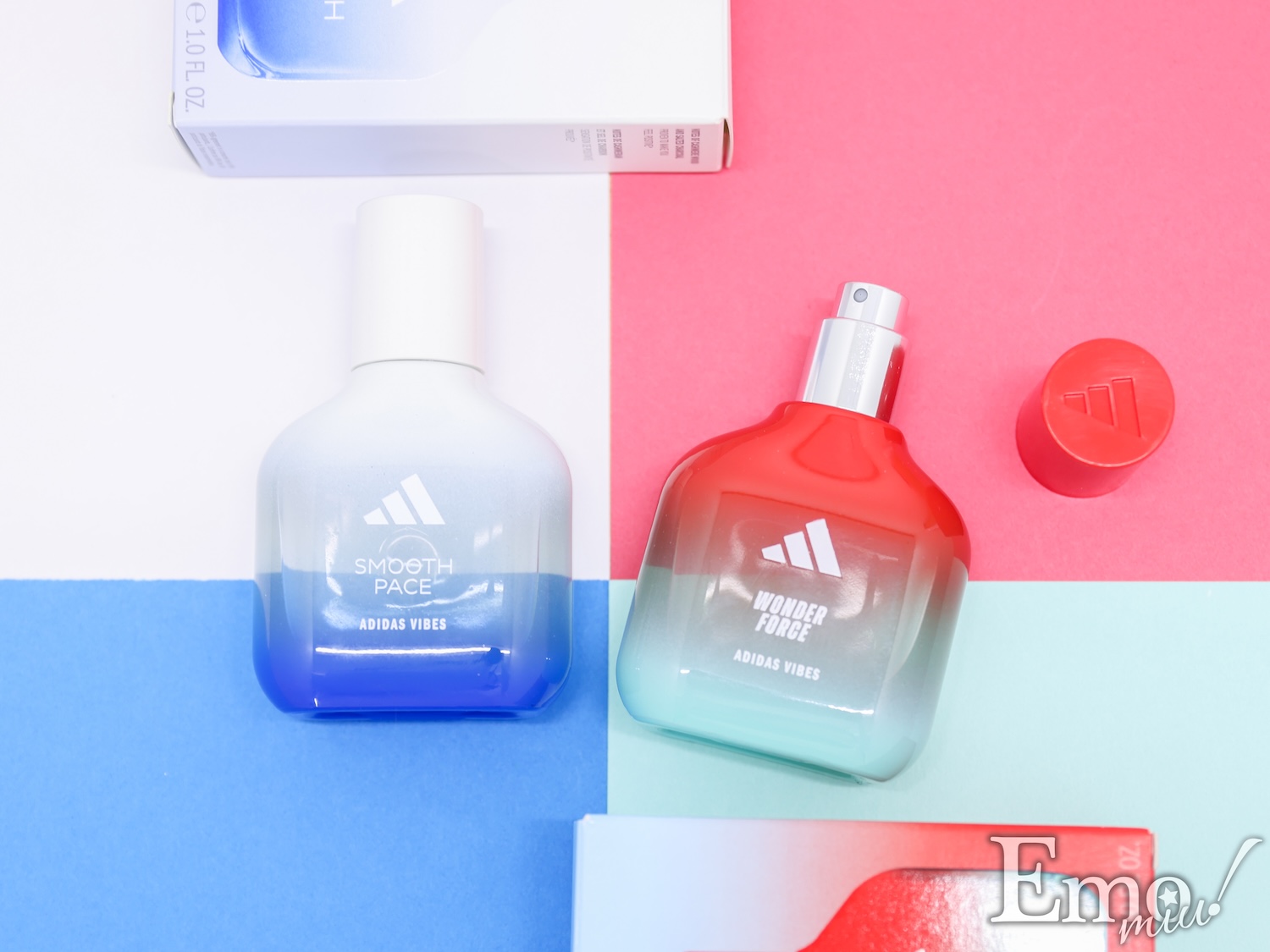 一方パステルグリーン×レッドの<アディダス バイブス オードパルファム Wonder Force(ワンダーフォース)>は、希望と喜びに満ちた気分へ。何でも成し遂げられる感覚を宿す香り。フレッシュなルバーブと柔らかなホワイトムスクがエネルギッシュな印象を描く香りだ。