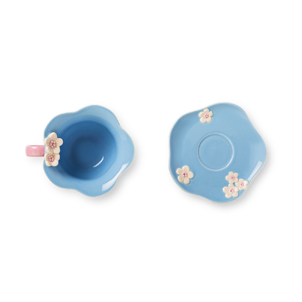 立体のお花がついた、マグとソーサーセット。ほっこりしたティータイムを過ごせそう。