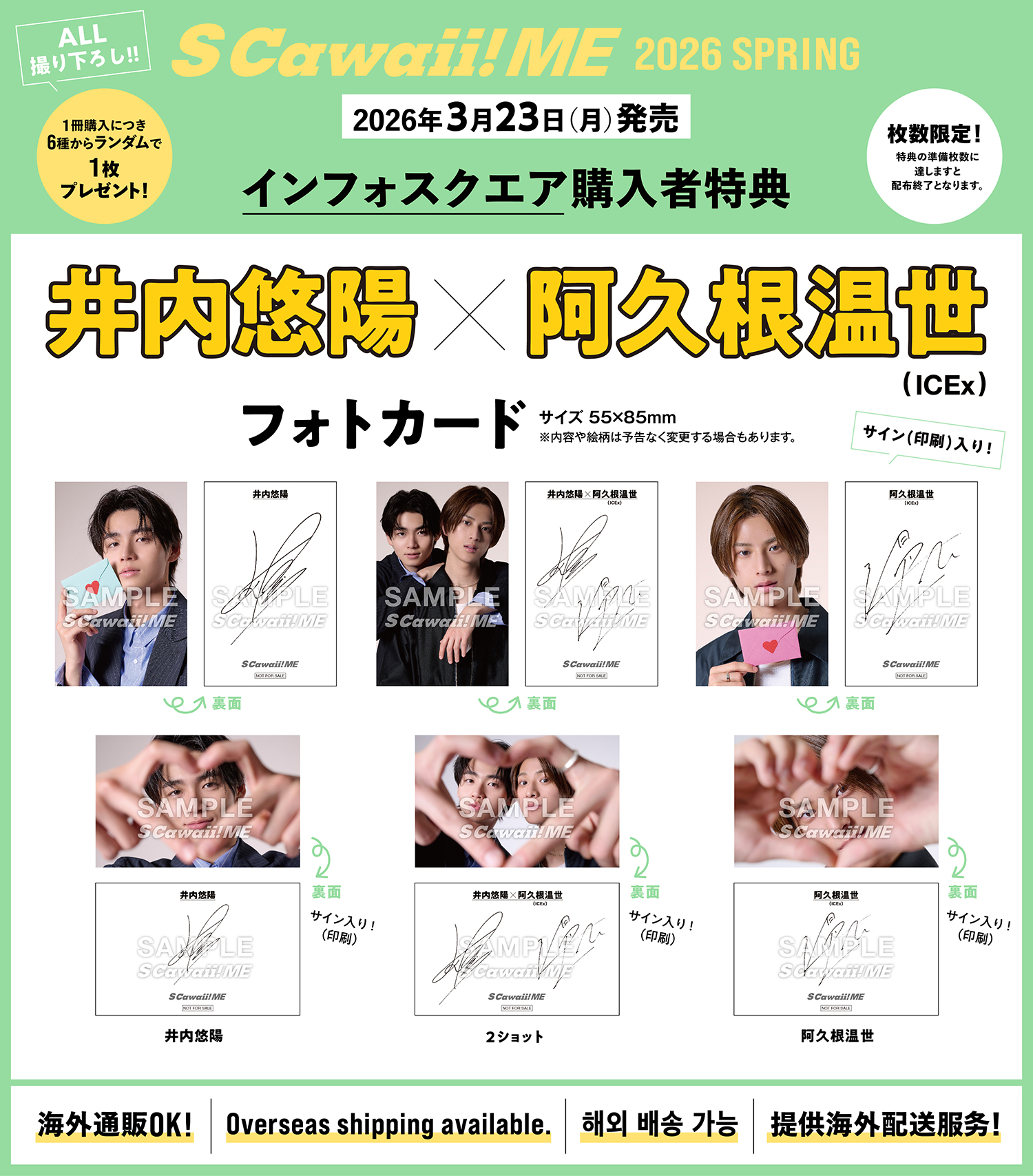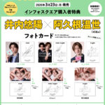 インフォスクエアから購入すると、井内悠陽と阿久根温世(ICEx)の購入者特典のフォトカードを6種類からランダムで1枚プレゼント。