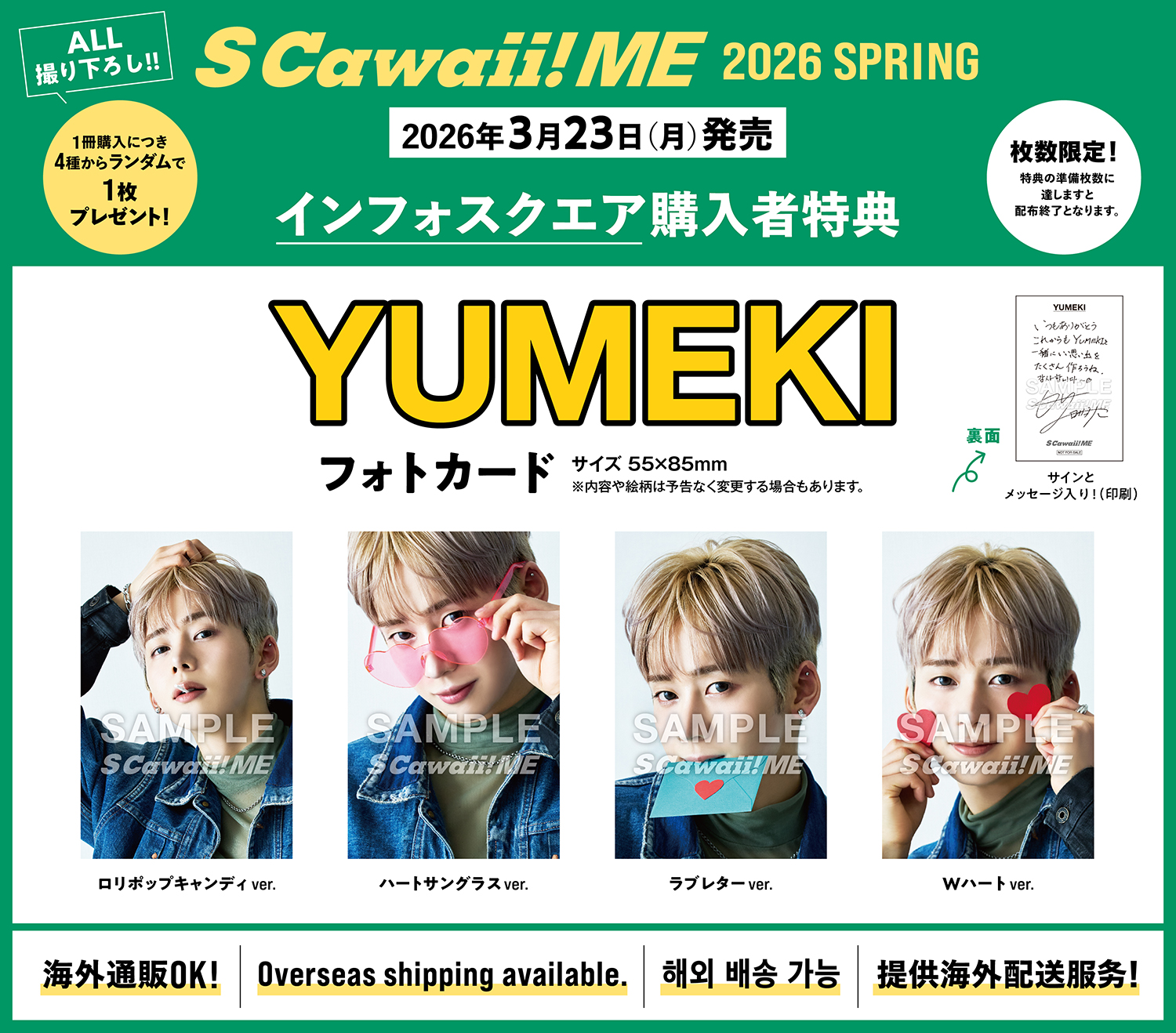 インフォスクエアから購入すると、YUMEKIの購入者特典のフォトカードを4種類からランダムで1枚プレゼント。