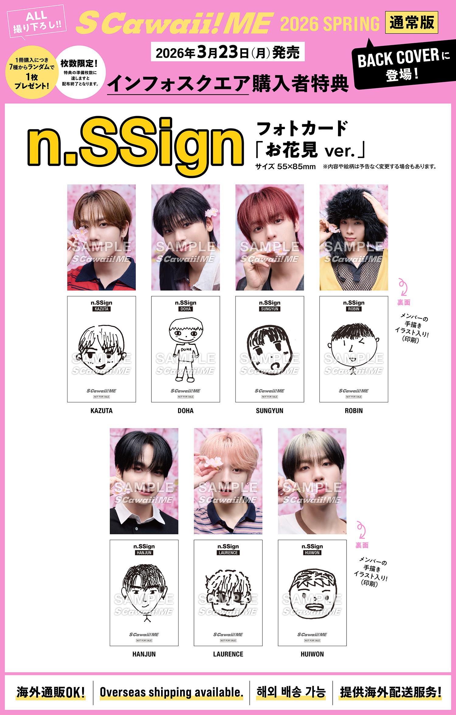 インフォスクエアから<通常版>購入すると、n.SSignの購入者特典のフォトカード(お花見ver.)を7種類からランダムで1枚もらえる。