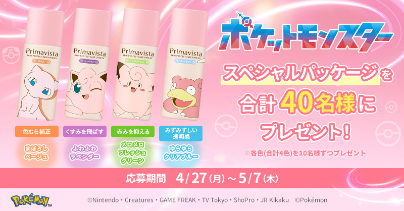 プリマヴィスタの化粧下地&洗顔料がミュウやニンフィアのポケモンスペシャルパッケージに!ピンクのポケモンたち大集結!!