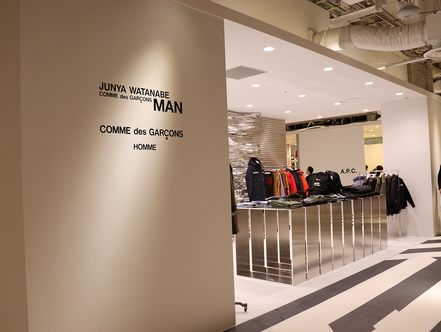 ISSEY MIYAKE(イッセイミヤケ)を始め、KENZO(ケンゾー)、Ground Y(グランドワイ)など、23店舗が並ぶ。