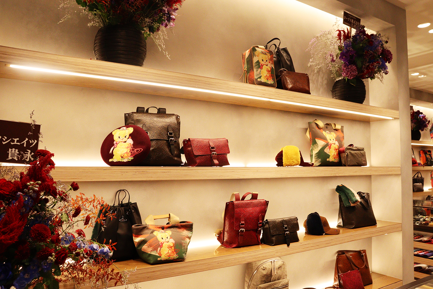 ヴィヴィアン・ウエストウッドアクセサリーを始め、アンリアレイジやパメオポーズなど全38店舗が並ぶ。