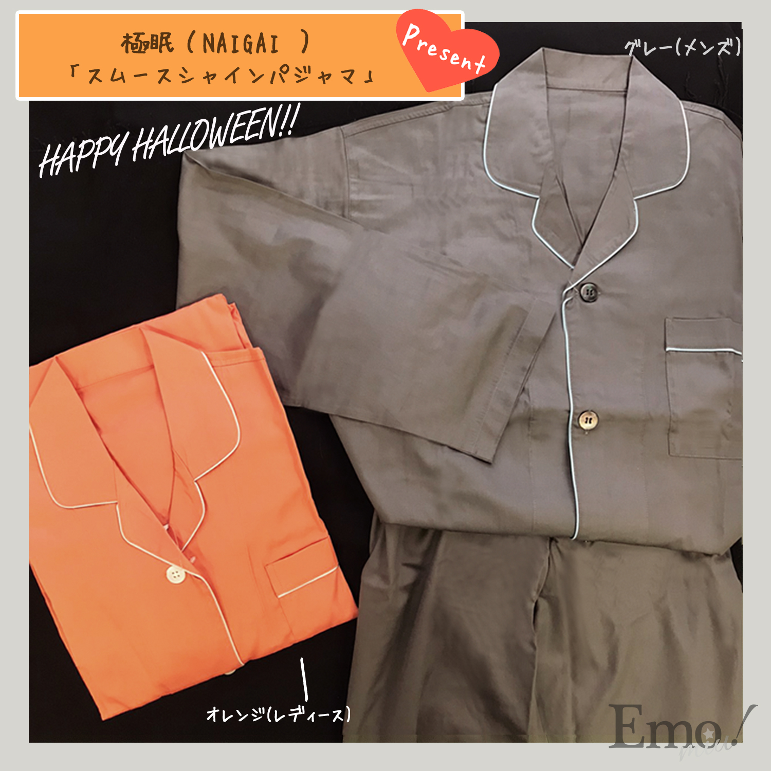 極眠(NAIGAI)「スムースシャインパジャマ」レディース(オレンジ)・メンズ(グレー)/各1名・計2名様