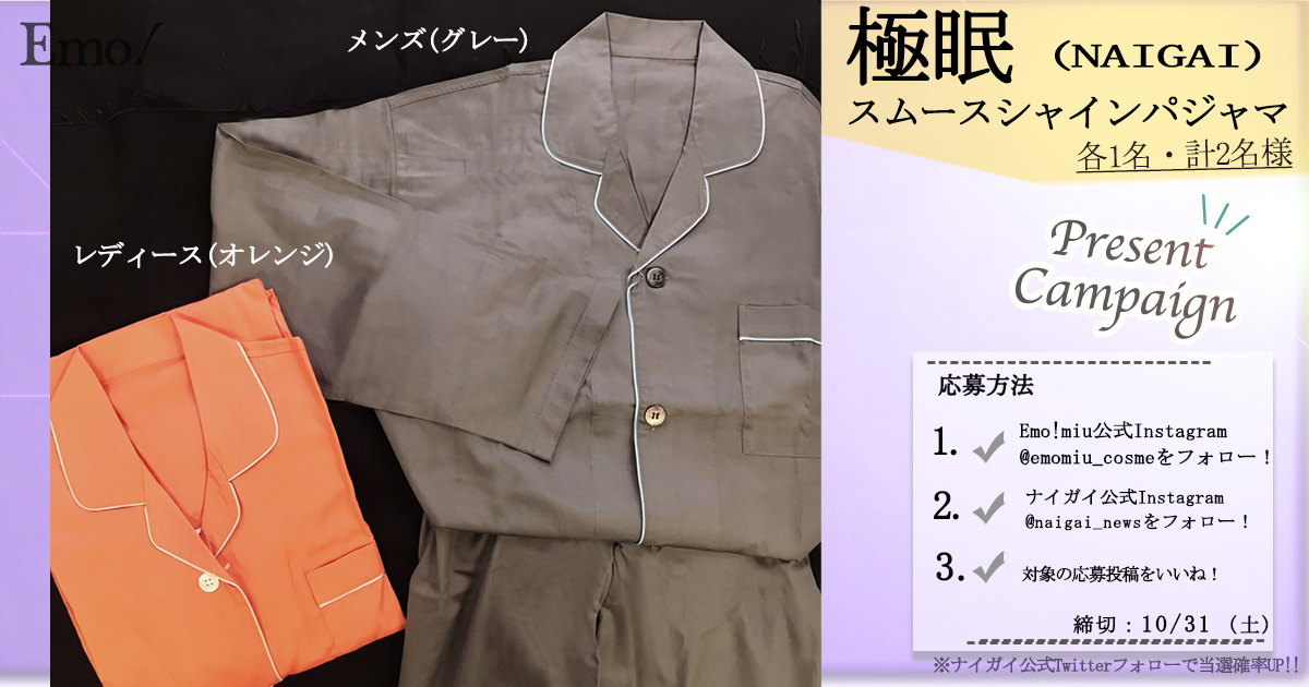 応募方法は、Emo!miu公式Instagram&ナイガイ公式Instagramをフォロー&<Instagram応募投稿をいいねするだけ!