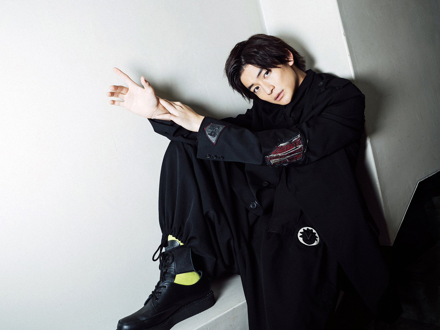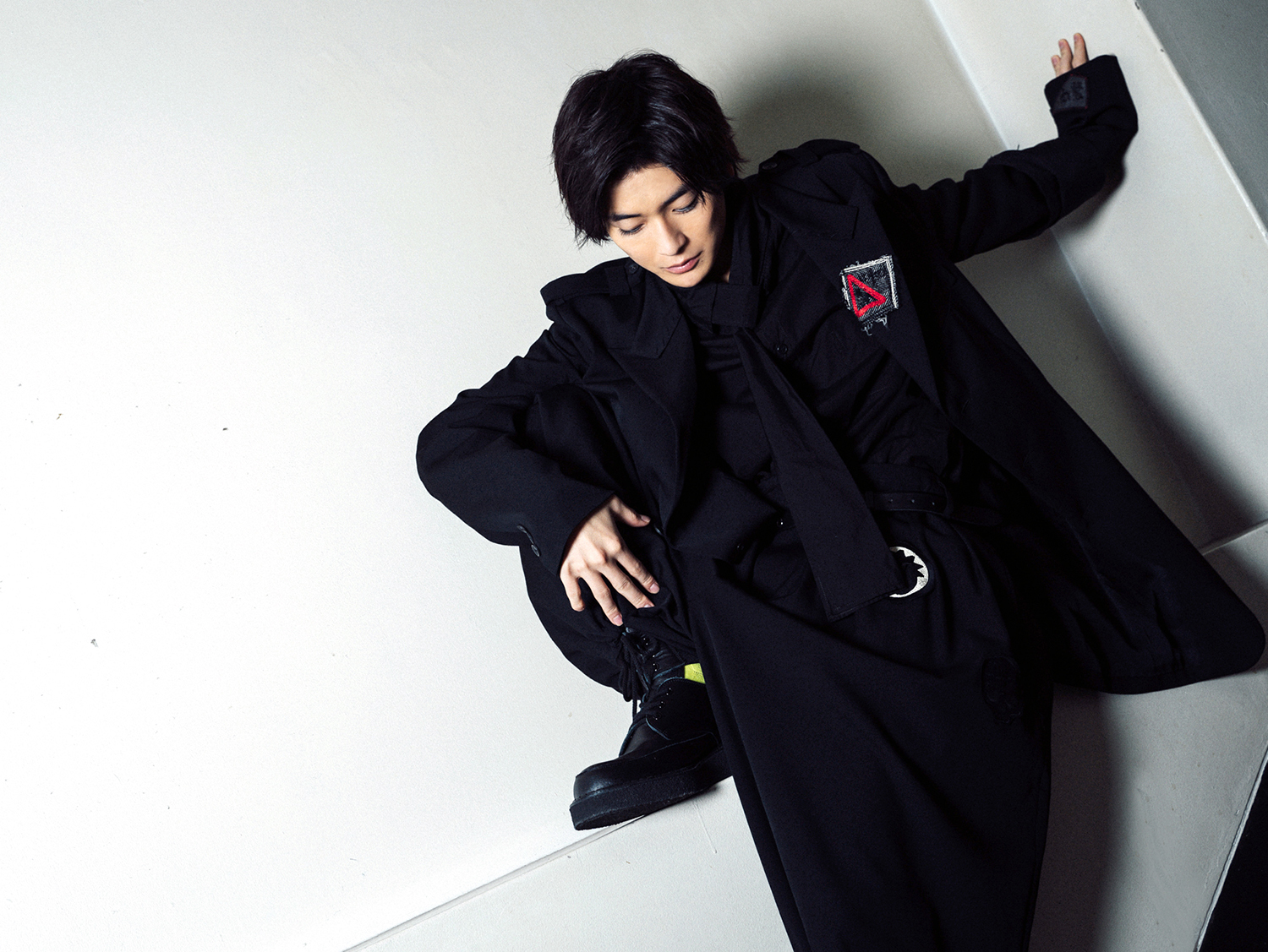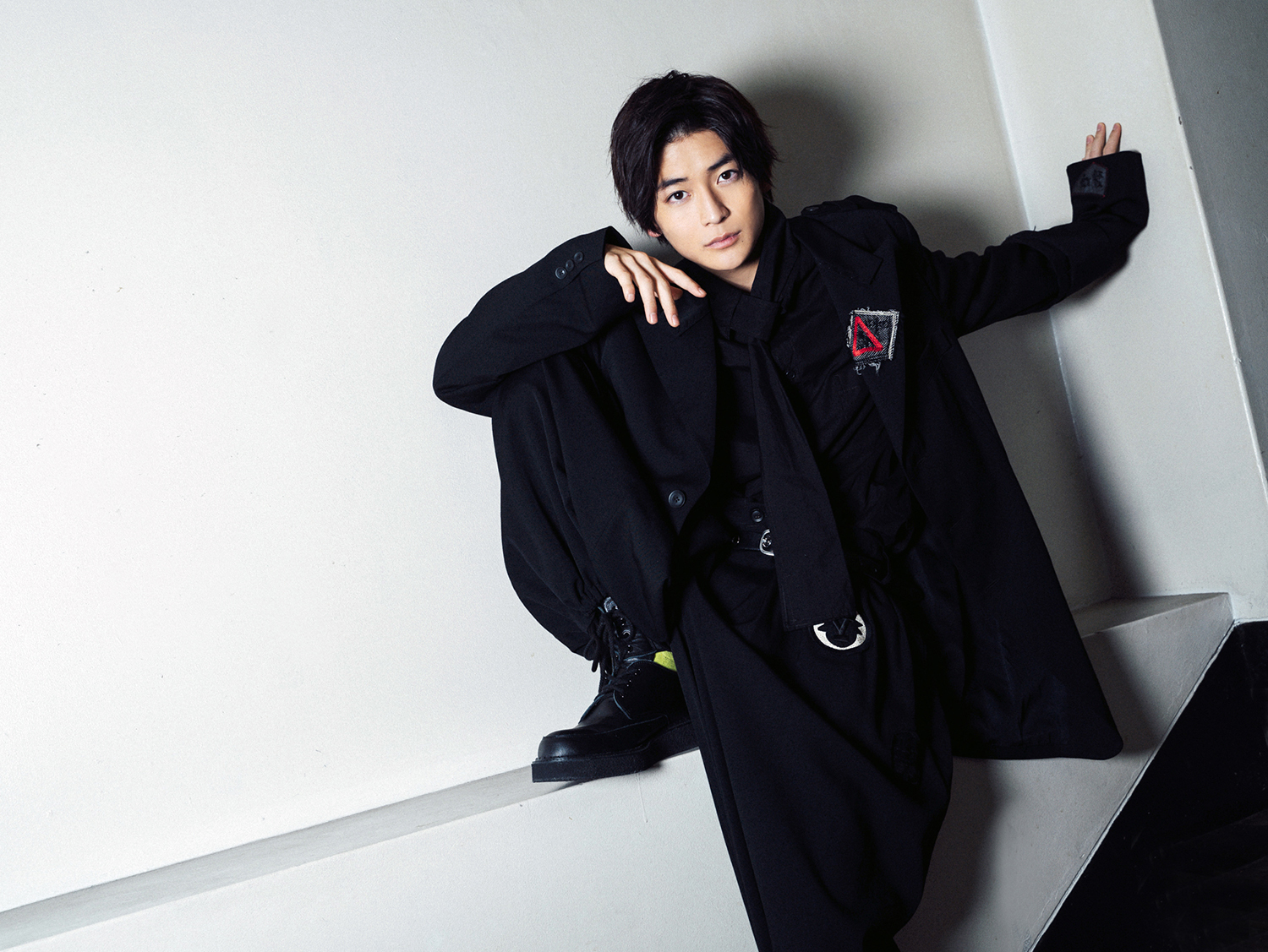 インタビュー写真は、全身ブラックに、ポイントでイエローとレッドが施された、「仮面ライダーゼロワン」とリンクする衣装で撮影。大人な雰囲気漂うクールなインタビューカットとも必見です♡