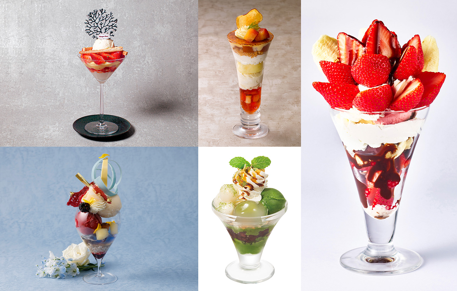 画像左から、いちごとピスタチオのグラスパフェ/390円(税込429円)